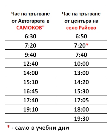 село Райово е последна спирка и автобуса се връща обратно в гр. Самоков веднага без изчакване